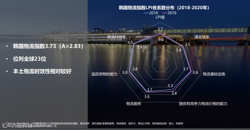 物流行业分散,企业竞争激烈,反而会降低物流价格,提升物流服务质量。据飞书深诺收集WorldBank的数据显示,韩国2018-2020年物流指数3.73,位列全球23位,本土物流时效性相对较好。