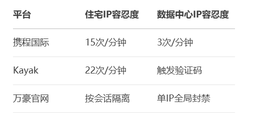 - IP访问频控:高频访问的固定IP会被快速封禁。例如某旅游公司在高频抓取Skyscanner数据时,因未部署动态代理,仅数小时便被平台全网封锁,数百万条数据成果瞬间作废。