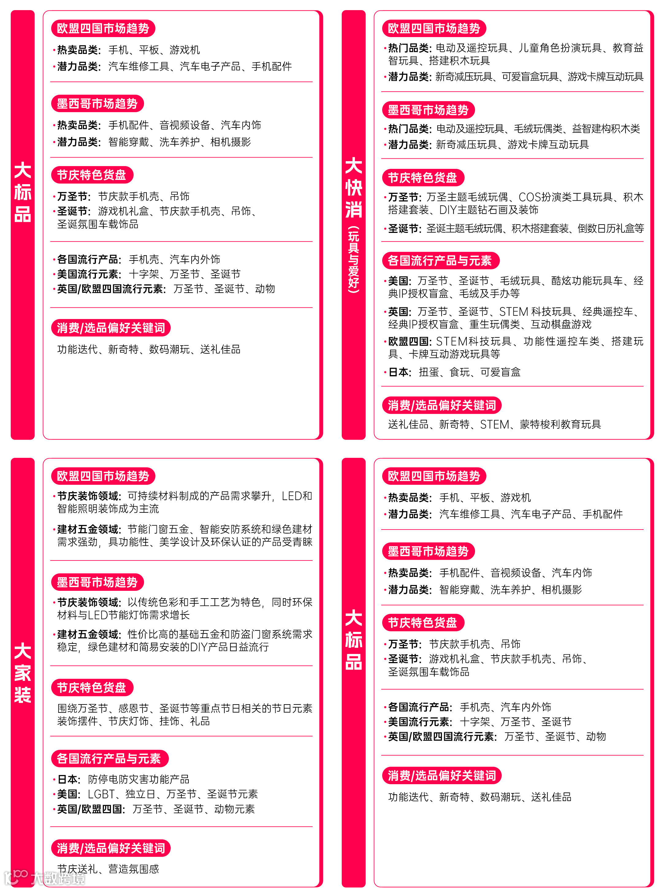 下半年大促众多,卖家需结合平台节奏和当地消费文化,进行精准布局,根据用户需求的变化,店雷达为大家总结了3个选品方向: