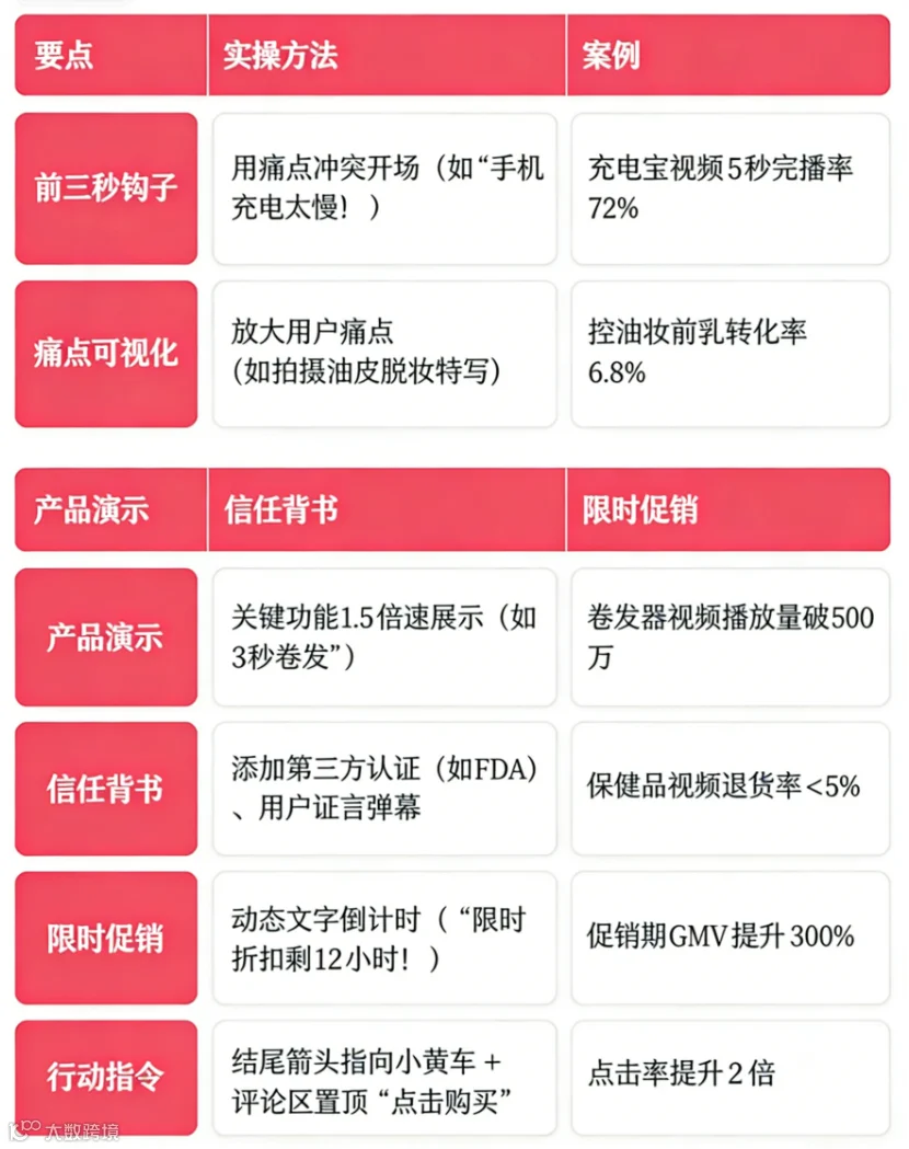 案例:保健品视频因植入权威认证,退货率降至<5%。