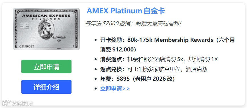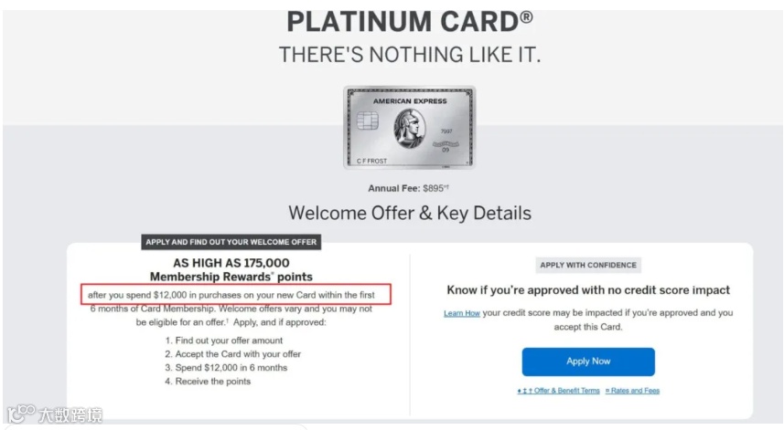 美国运通百夫长卡已将开户消费门槛从$8,000提升至$12,000,当前开卡奖励最高可达175,000积分。若最终奖励仅为80,000积分,则$12,000消费门槛的性价比显著降低。