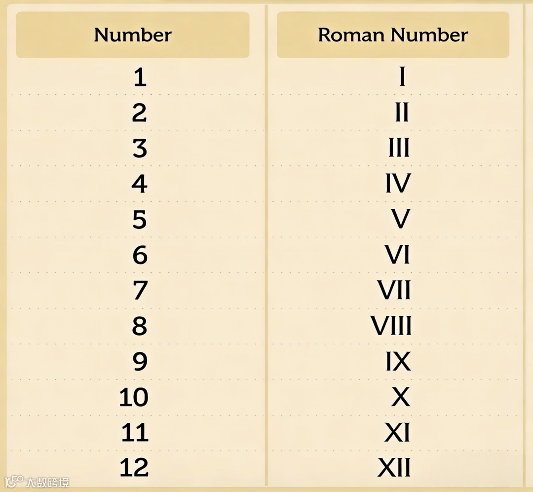 罗马数字图表