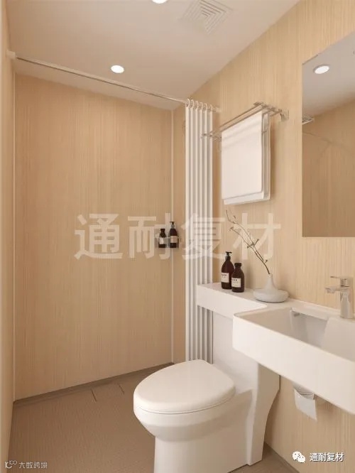 SMC集成卫浴主体材料具有隔热保温性能,肤感亲切。冬天保温,夏天隔热。传统装修材料隔热性能和保温性能很差,热量容易丧失,另需配置浴霸等采暖设施。