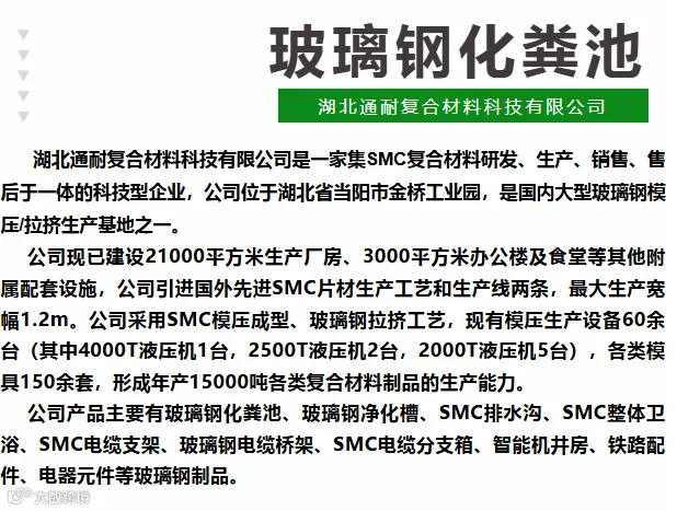 玻璃钢化粪池在我国的很多大都市周边及间隙地带迅速发展起来的分散建筑、以及小城镇,不便建大型污水处理厂,为这些工艺提供了更为广阔的发展舞台。玻璃钢化粪池的选用一般玻璃钢化粪池分普通型和加强型,共同点均采用高分子复合材料与强度高玻璃钢纤维材料复合制成的圆筒型化粪池。不同点:普通型一般应用于无车行地,如绿化带、草坪等地,表面覆土厚为300 mm~ 800mm;加强型应用于停车场或车行道下,一般要做些类似表面覆混凝土等的加强工艺措施处理。对于一些比较特殊的地区,如寒冷地区,当地采暖计算低温-10℃时,化粪池须采用过冰冻层高度的覆土;其中井盖的选择可有两种:过汽车时,应用重型井座井盖;不过汽车时,应采用轻型井盖。总的来说,选用玻璃钢化粪池时,一般要根据不同建筑物、不同清掏周期、不同用水量标准、粪便污水与生活废水合流等不同情况和类别,玻璃钢化粪池,还要经过严谨地计算,以求出多种化粪池的适宜使用总人数,并结合多种实际情况来选用其型号。