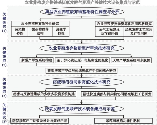 项目旨在研发并集成农业养殖废弃物铁基厌氧发酵气肥联产关键技术及设备,通过构建“养殖废弃物—清洁能源—有机肥料”循环经济模式,实现畜禽粪污等有机固废的高效资源化利用。项目将重点开展新型厌氧产甲烷系统构建、沼液沼渣高值化产品研发,并建设3000m³示范工程,形成可推广的成套技术装备,推动农业废弃物处理向绿色低碳、循环增值方向转型。
