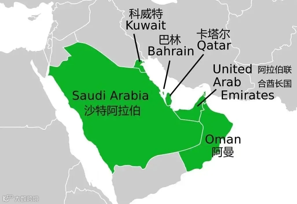 中东地区特指海湾阿拉伯国家合作委员会(GCC)成员国,包括沙特、阿联酋、科威特、卡塔尔、阿曼、巴林这六国,合称“海湾六国”。