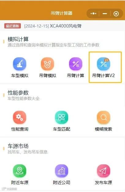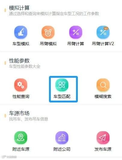 - 切换至吊臂计算器中的“车型匹配”模块。