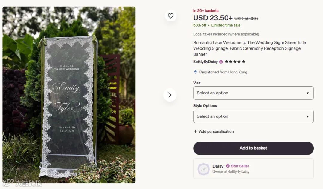通过"+ Add personalisation"功能提供低成本定制(仅修改文字/日期),将操作简易性转化为高溢价能力。客户获得专属情感价值,卖家生产成本几乎不变。