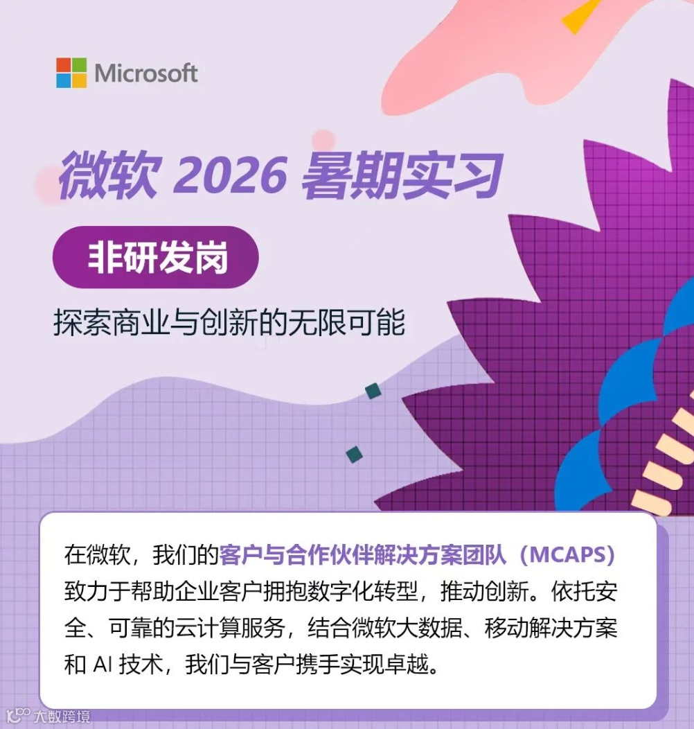 微软 2026 暑期实习非研发岗重磅招募