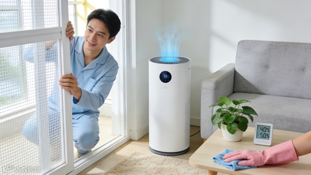 平时关闭纱窗,仅在飞絮低发时段短时间通风换气。也可以开启空气净化器进行辅助过滤空气中的飞絮和致敏颗粒;清扫时记得先喷水湿化,再用吸尘器清理,别干扫,不然会让过敏原“扬尘”。飞絮季也别在室外晾晒衣物、毛绒玩具,防止飞絮附着。