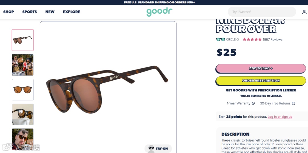 图源:goodr目前,goodr的产品在全球 5000 多家店铺和品牌官网上出售,提供100种框架和颜色组合,并每年发布150款限量版眼镜。