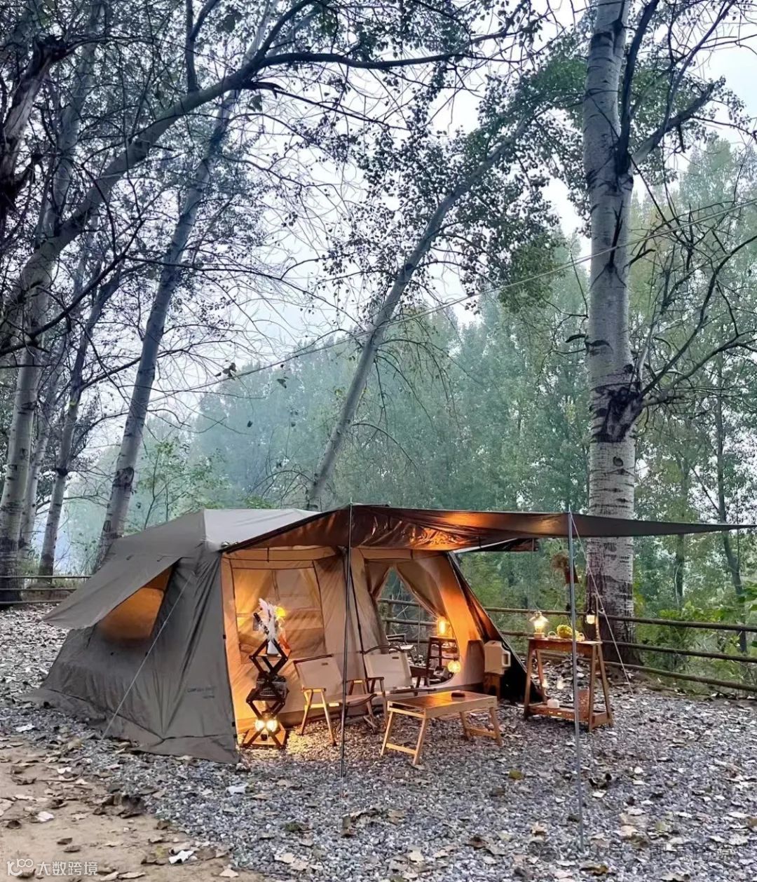 如今,帐篷的作用不只是遮风避雨,更是年轻人社交和展示生活方式的载体: