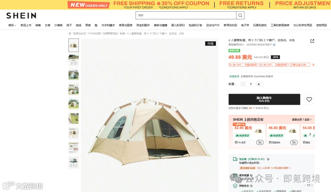 希音平台为户外产品提供了爆款机会,特别是在轻奢露营、便捷户外装备等品类。以下是我选择在希音卖帐篷的几大原因: