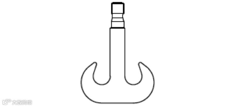 4)直柄双钩(shank ramshorn hook):具有圆柱形钩柄的双吊点吊钩。