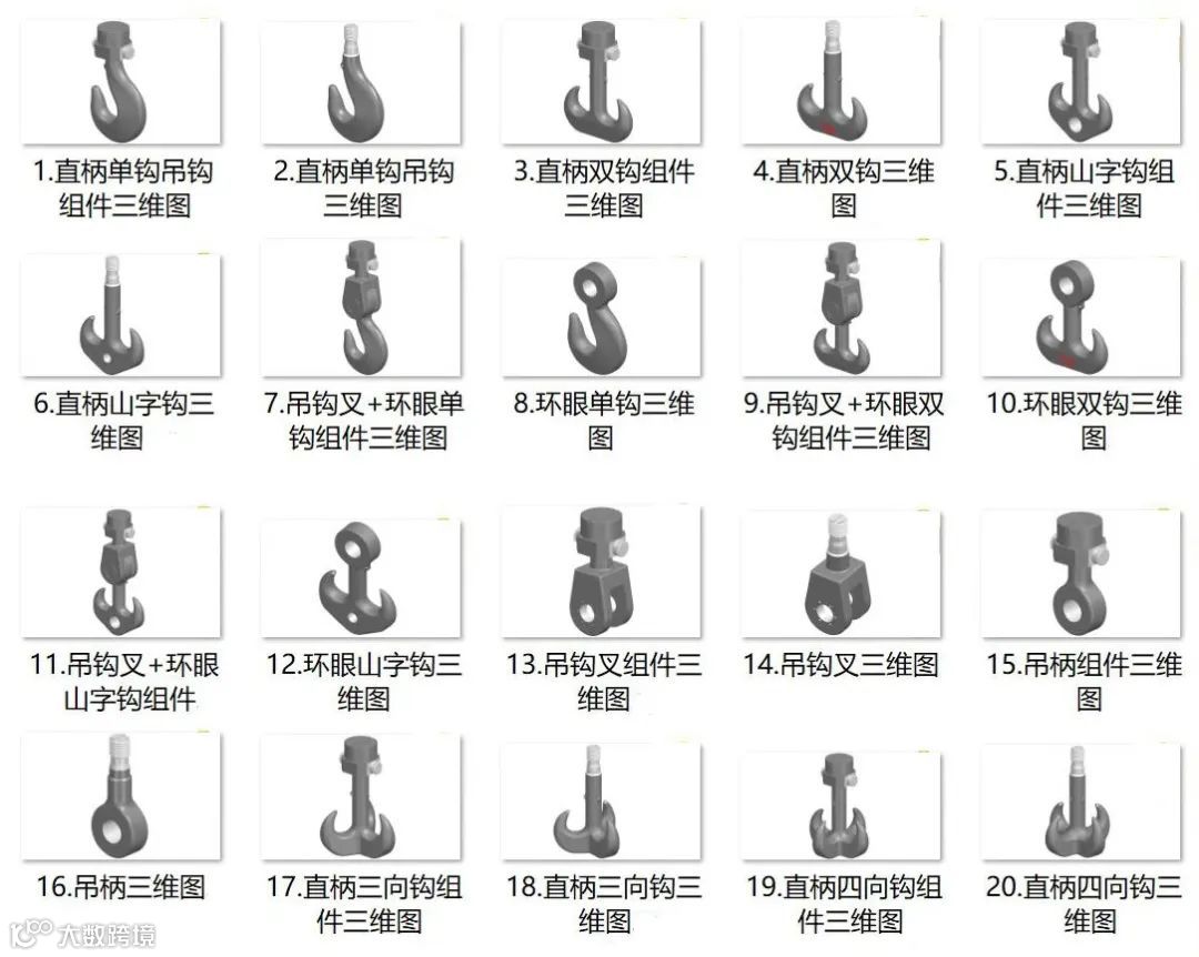 图22 各种吊钩及吊钩组件的三维图(供图:德起起重)
