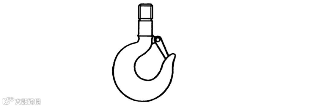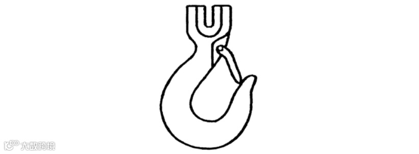 15)U形夹自锁吊钩(clevis self-locking hook):U形接头连接、具闭锁装置的吊钩。