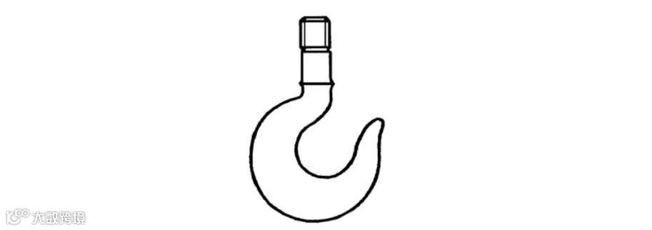 1)直柄单钩(shank hook with point):具有圆柱形钩柄的单吊点吊钩。