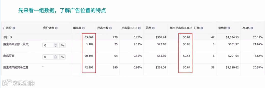虽然搜索结果其余位置通常拥有最高曝光量且花费较多,但若以每元投入换取的平均曝光次数计算,则商品详情页展现出了更优性价比。