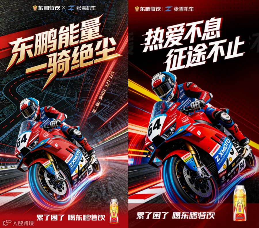 这段合作的开端颇有戏剧性。2025年11月,张雪在抖音上公开招募赞助商,评论区里,网友高频@东鹏特饮,品牌方顺势“听劝”,2026年1月正式签约,成了张雪机车唯一饮料类品牌赞助商。