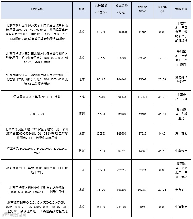 高溢价地块:国央企主导核心资产争夺