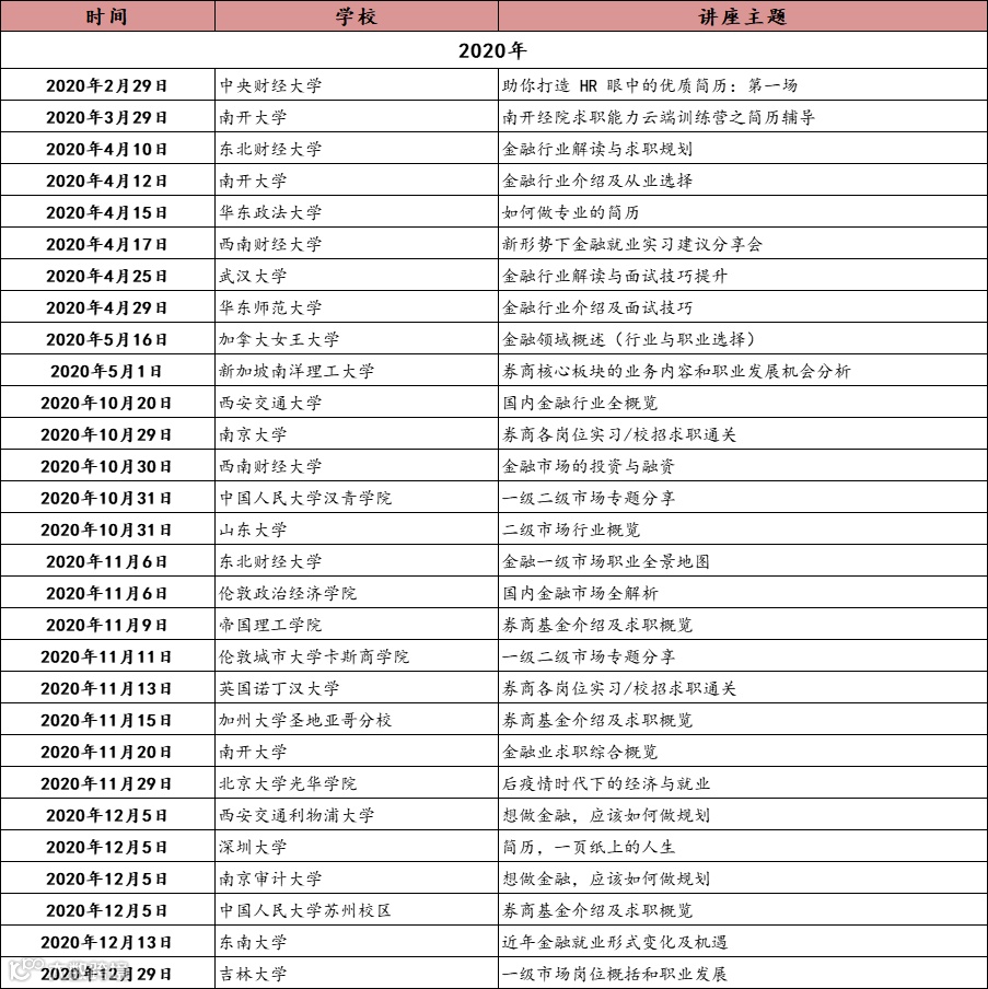五、“百校行”讲座,以下是往期去往高校讲座的名单整理