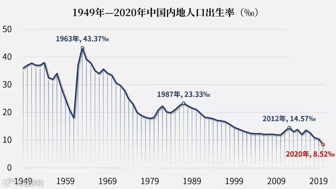 纵向来看,2020年人口出生率首次跌破1%的心理关口。