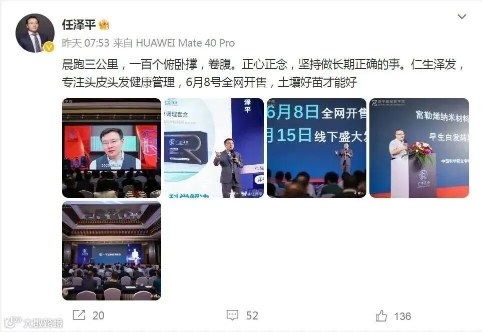 先说说这个标题,当首席经济学家任老板开始发“生发广告”,这个时代砸了?