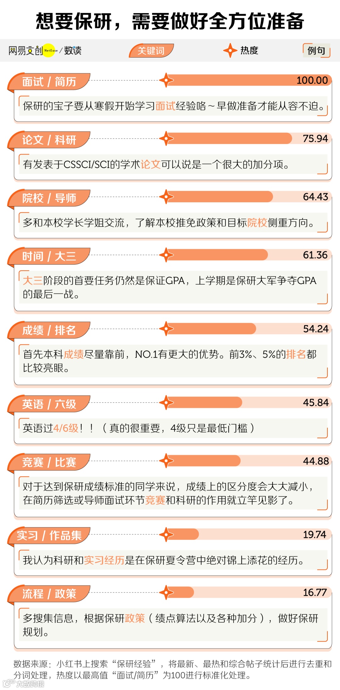 另外,研究生更看重科研属性,所以在经验帖中,论文科研、竞赛比赛、实习作品集这些夏令营和推免的加分项,都被谈及;院校、导师这些重要的决策对象,也有人教授梯度规划、套词占位等技巧。