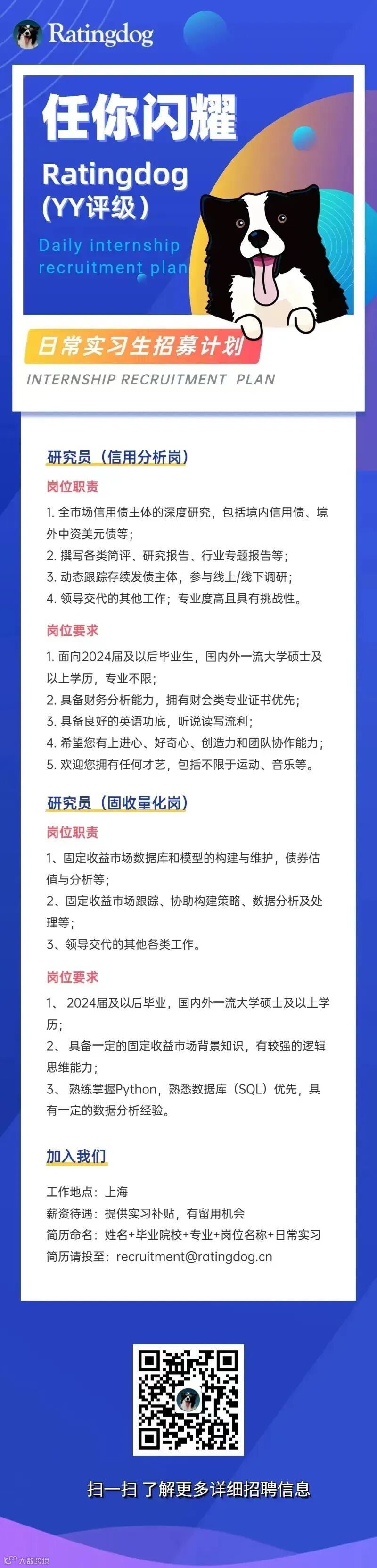 【任职要求】1. 国内外重点大学全日制统招大四保研及硕士以上学历,统计学、计算机、数学、数量经济、金融学等相关专业优先; 2.工作勤勉,擅于撰写研究报告,具有较好的沟通能力,实习时间不短于3个月,可长期实习优先,可远程考核;4. 较强的数理统计知识和数据处理分析能力,熟悉使用办公软件,可应用Python等编程者优先。5.优秀者可直接推荐转入暑期实习,有留用机会。