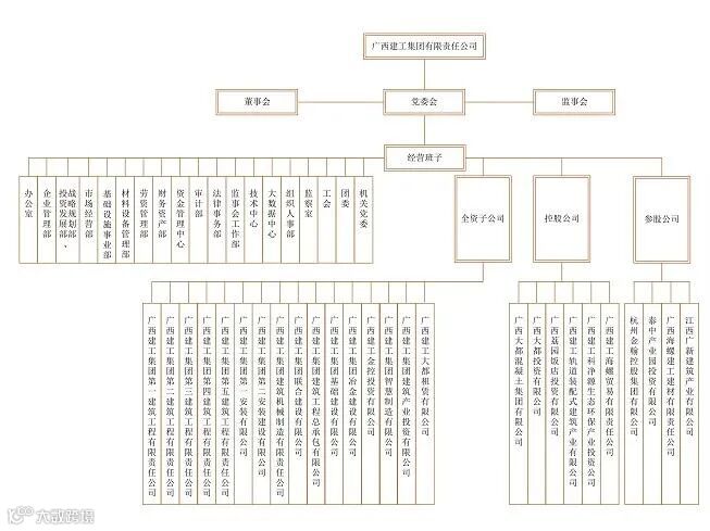 至于绿地和建工合作,将是怎么样的一笔生意?坊间有很多猜测,先看一张广西建工的组织架构图——