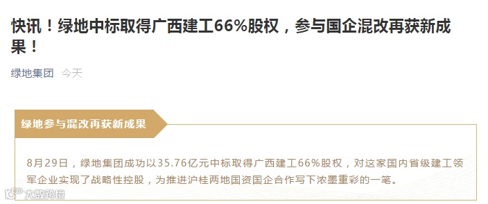 在绿地集团的官宣里,没有透露混改的细节,只是公开“表扬”了广西建工。