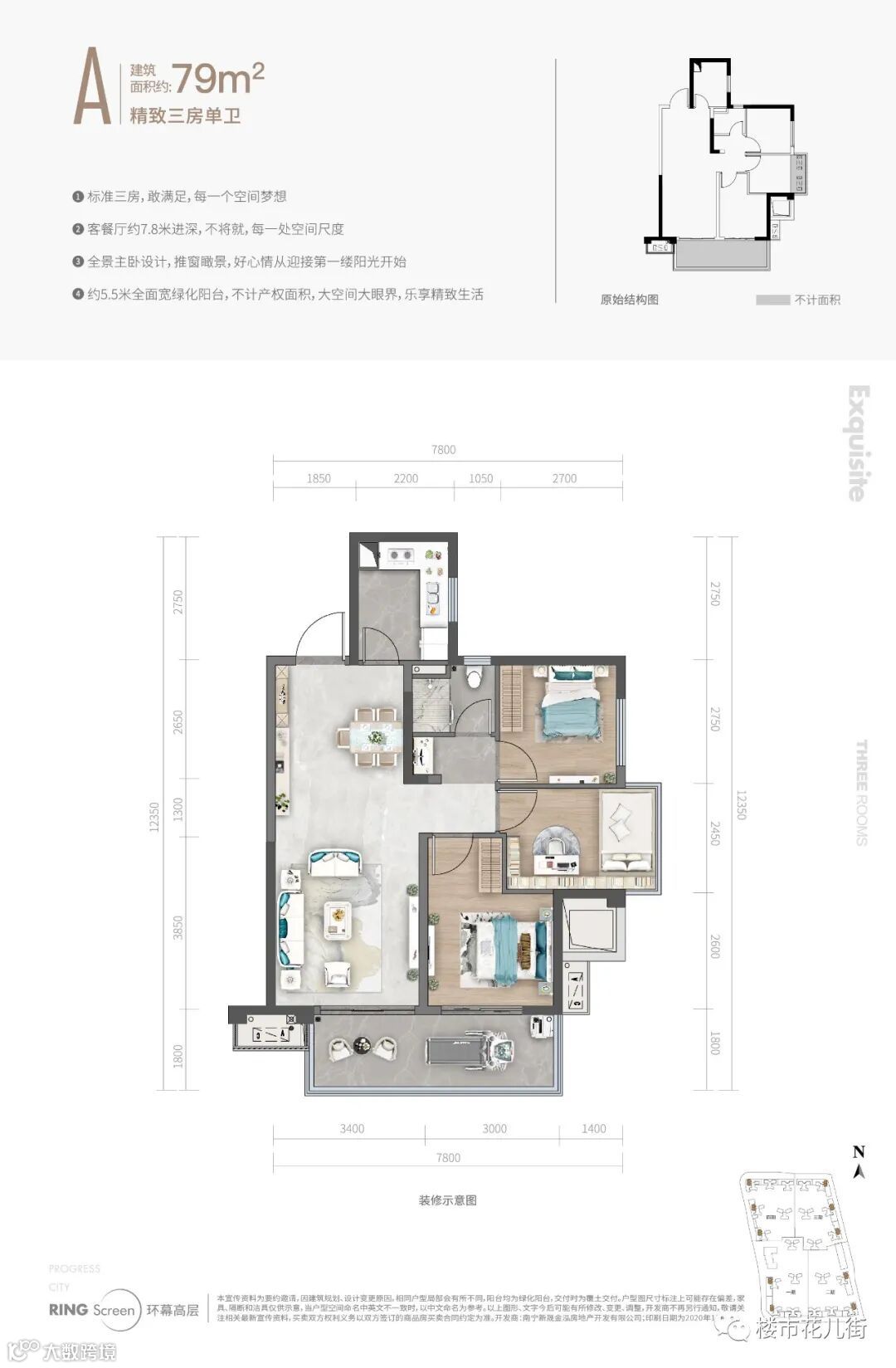 79㎡的三房户型,这是五象一直供应量很少的面积段。金科城这次不仅补上了缺口,还做了一个意想不到的标准三房,且很多房源的排布是放在了朝南的位置。