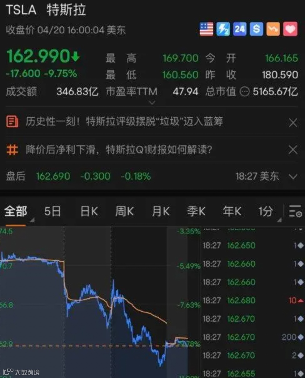 4月20日这一天,马斯克不仅放了一个30亿美元的烟花,而且特斯拉大跌近10%,市值要腰斩,还有数百万推特用户选择不支付每月8美元费用,宁可失去蓝勾勾标记。