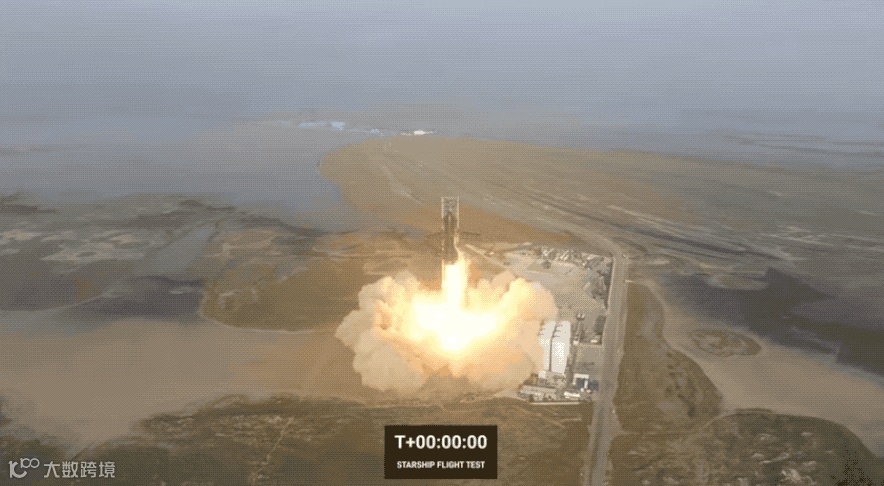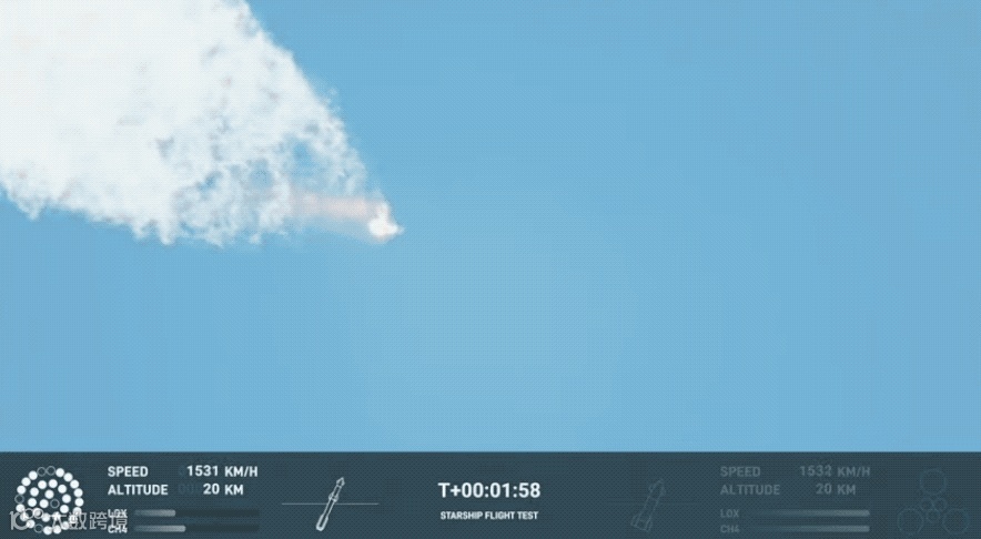 星舰Starship 成功从轨道发射台升空并爬升至墨西哥湾上空约 39 公里的远地点。