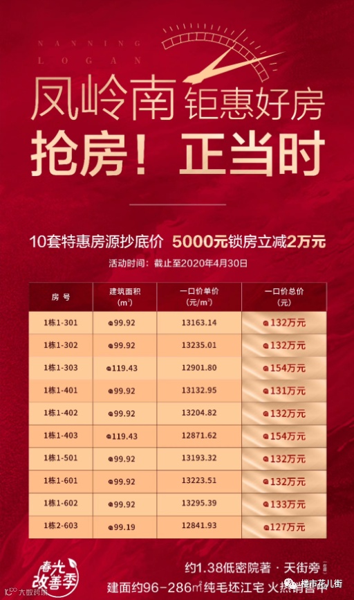 而同在这一板块,占位一线江景的龙光天曜,当初拿地时足足高出一大截的楼板价,注定价格起点更高,理论上不该加入价格战。但是,现实总是太残酷!估计来自江与城的压力过大,10天前花儿姐踩盘时了解到价格信息在1.4万~1.9万元/平方米的龙光天曜,这两日却打出1.28~1.32万元/平方米的起步价。