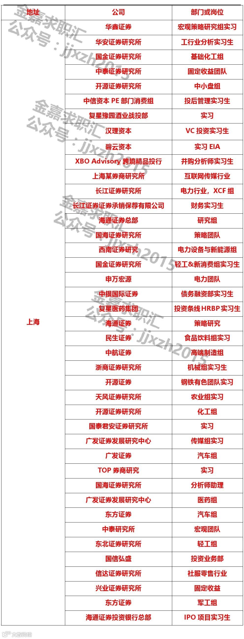 【实习部门】研究部(上海)
