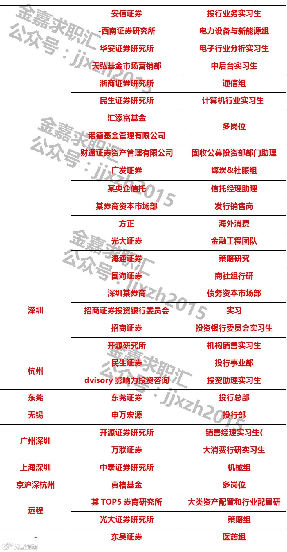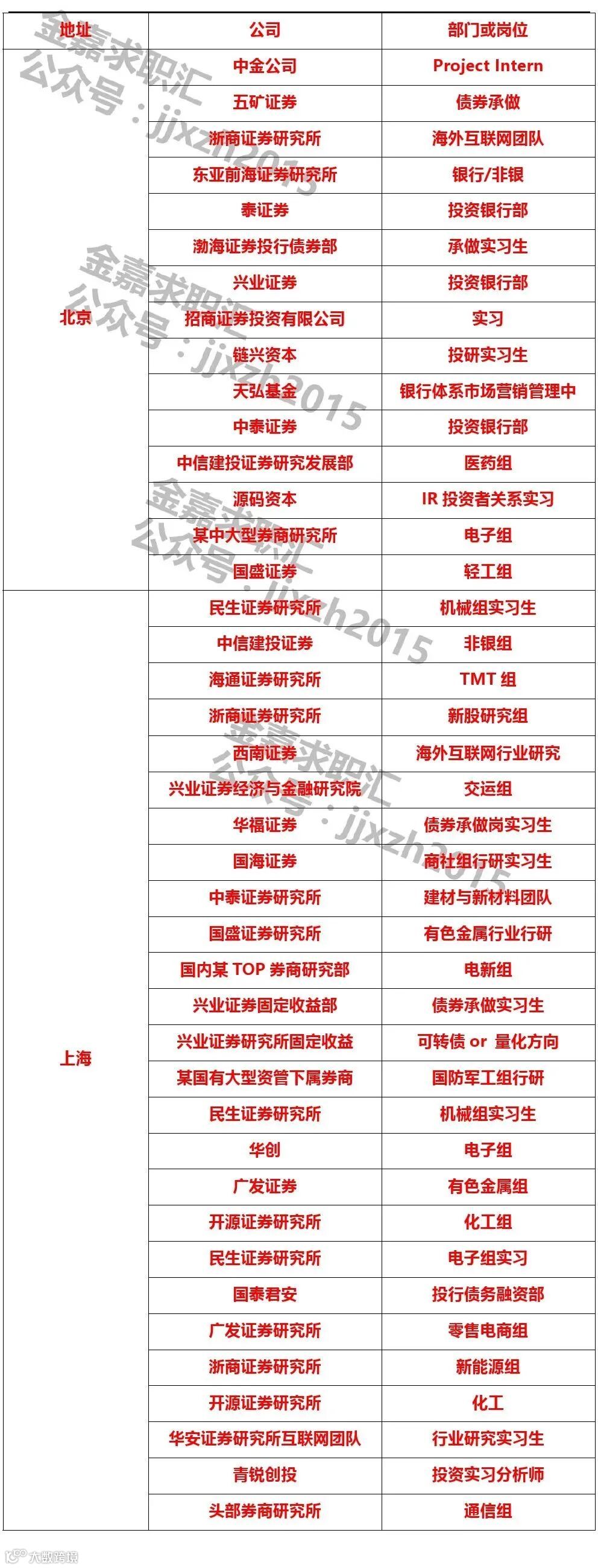 1、投资分析实习生(北京/上海/深圳/杭州)