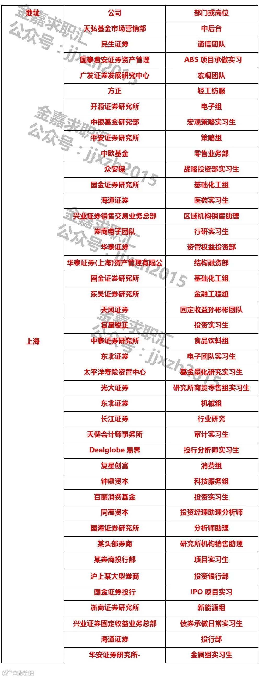 主要参与上海、江苏地区IPO、再融资项目。要求:每周至少到岗3天,能适应出差,有一定财务基础。有投行和事务所实习经历优先,可立即到岗优先。