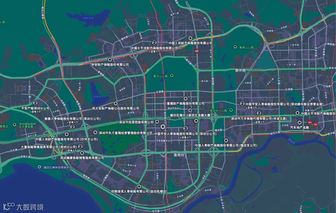 深圳红岭路,全市45%的中资银行、84%的外资银行、33%的保险机构、22%的证券机构总部和地区总部集中于此。
