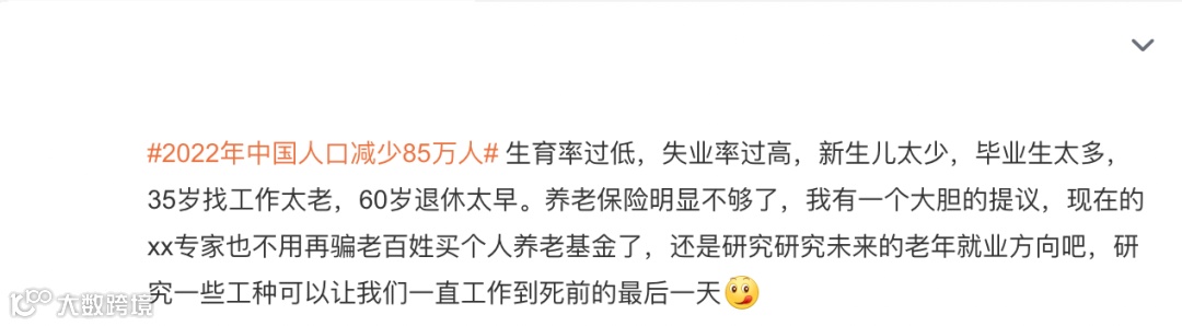 大疫三年结束,经济发展低迷,互联网裁员不断,失业率节节攀升,中国人口减少85万呈现负增长。