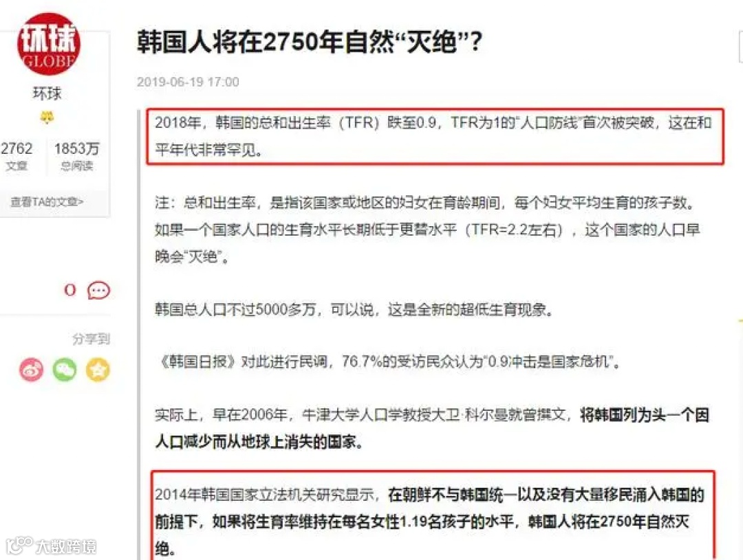 很多韩国媒体也发出了警告“韩国本世纪末会消失”“韩国可能即将成为第一个自然消失的国家”。