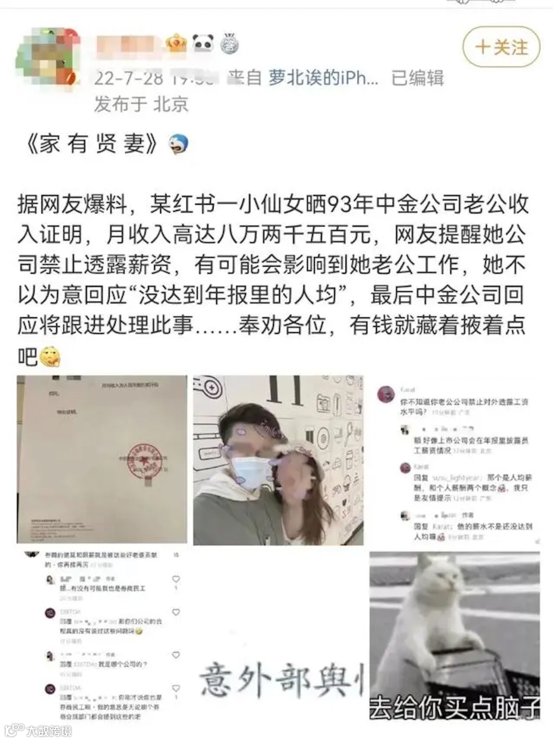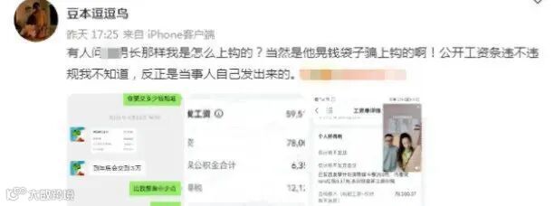 至于原因,和中金哥们一样,是被自己“女友”将工资单晒了出来。