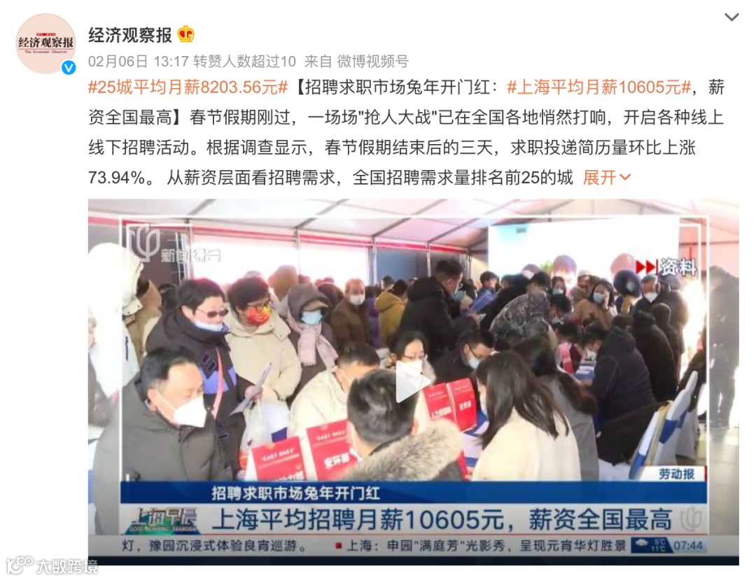 就像是最近各大城市的平均薪资,我就想问上海的平均薪资10650元是怎么算出来,没加上我的吧。