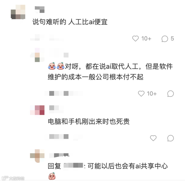 有人说,人工可比AI便宜,软件维护成本可比人工便宜,花大价钱办小事,老板才不傻呢。