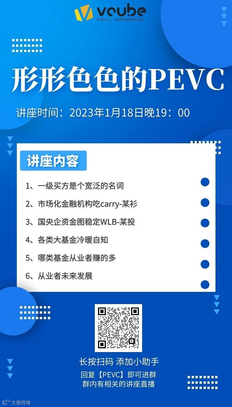 我们金融小伙伴在1月18日,也就是下周三晚上19:00 邀请了行业的老师为大家讲解形形色色的PEVC。