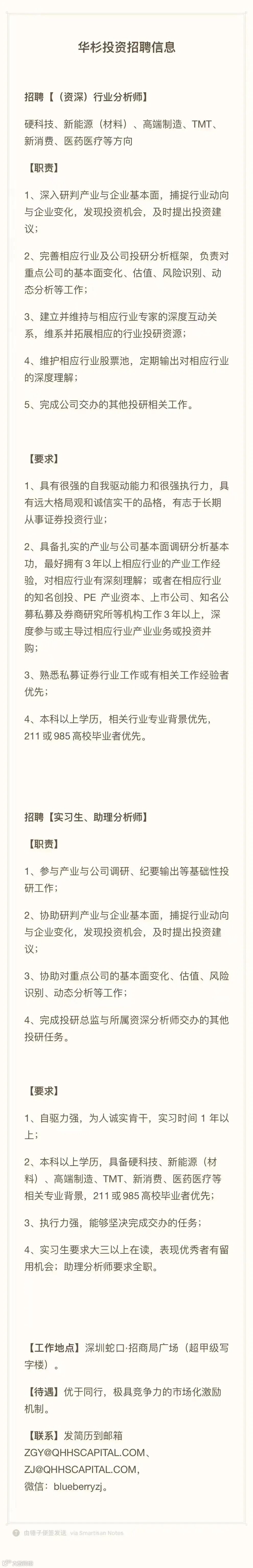 3. 勤于思考、对投研有浓厚兴趣,愿意投入时间,有专业研究成果或相关实习经历者优先
