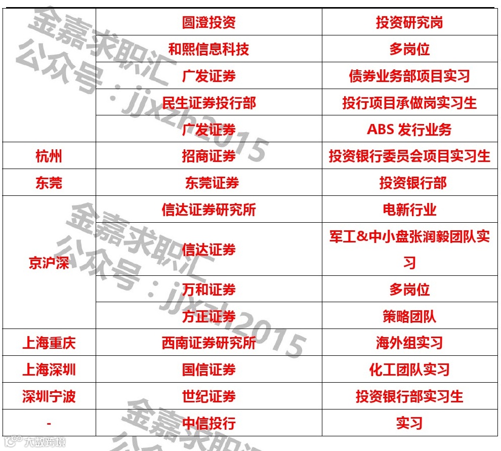 6、有投行实习经验优先。