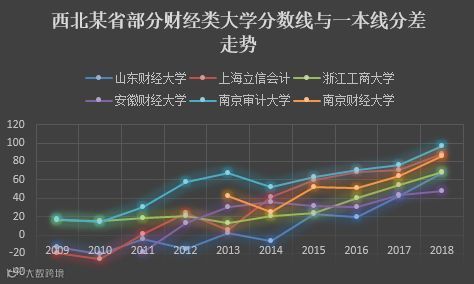 夜老师统计了自己家乡10年内一些热门财经类二本学校(有的是二本学校一本招生,有的是曾经二本现在升了一本,各省情况不同)的分数线,发现人们对于财经和金融的狂热那可是逐年递增:
