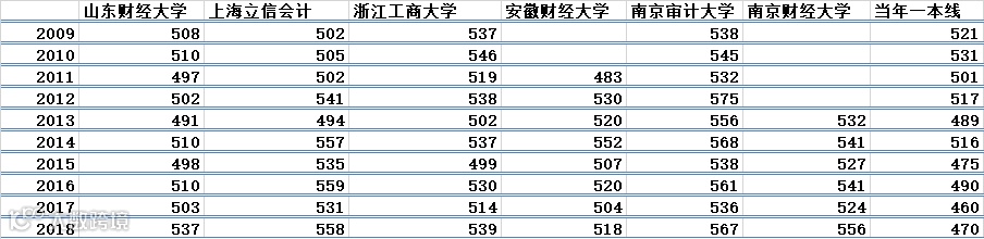 例如安徽财经大学、上海立信会计金融学院等,当年在夜老师家乡招生,还够不着一本分数线,如今要比一本线高出7、80分,这还只是提档线。