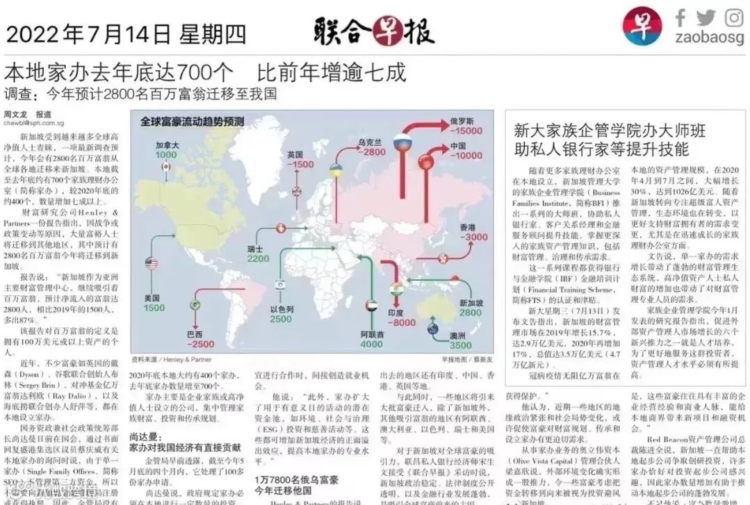 现在全球富人都在寻找资产避风港,许多超级富豪蜂拥至新加坡,去成立家族办公室。